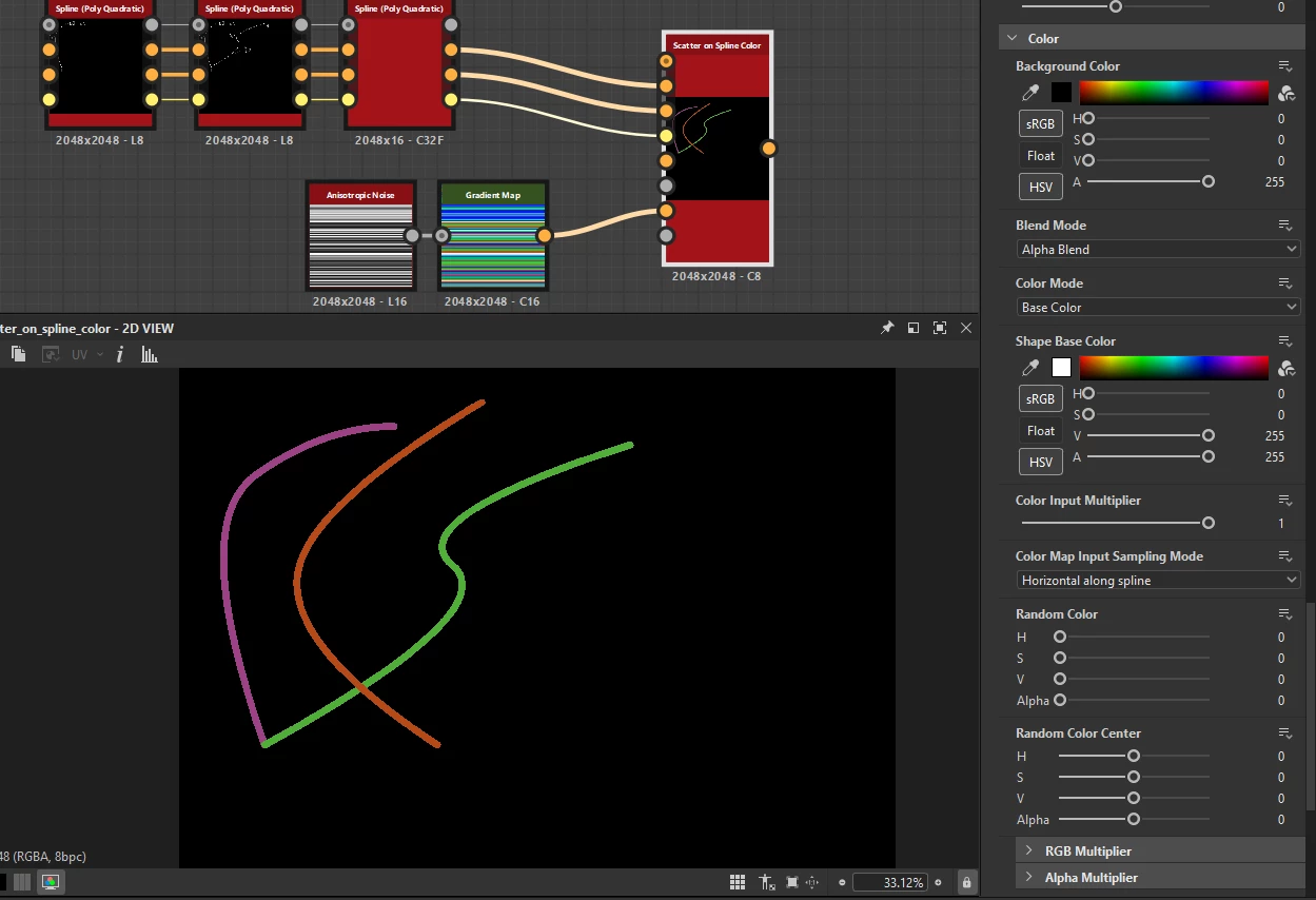 I cant figure out how to add colors to the splines/wires, everything I've tried adds color uniformly and not per-spline. Might anyone know how to solve this? Thank you!