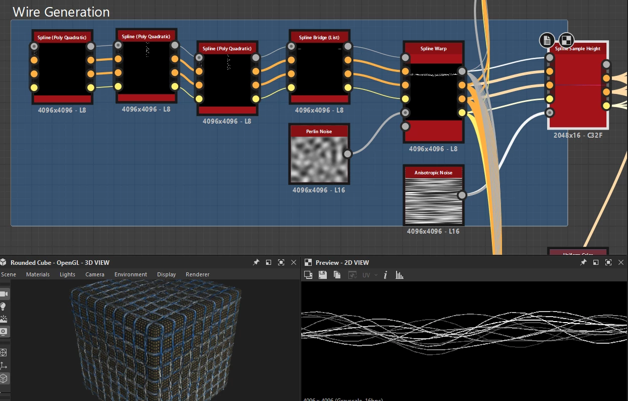 Im trying to make twisted wires in substance designer, Ive gotten the twists well enough with spline nodes.
