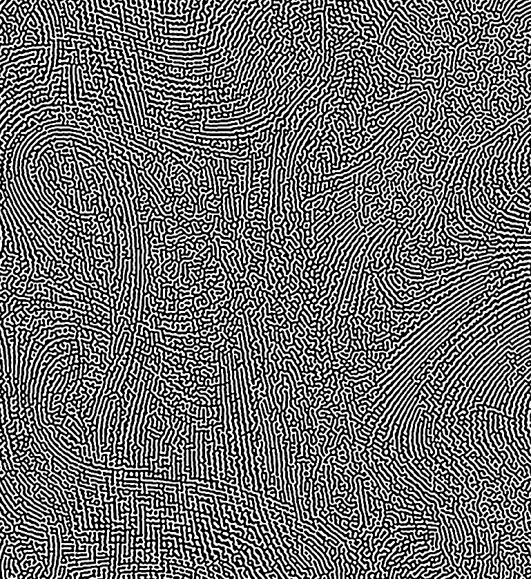 I've tried creating the swirly structure first in black and white and then breaking the white lines up into smaller dots, but I couldn't find a good way of doing that in a way that does distributes the dots somewhat regularly along the lines instead of breaking them up fairly randomly. Another approach of breaking the white lines up more regularly that crossed my mind was putting a sine wave onto them somehow that follows the curves and only taking the peaks, but I don't know if that's possible in Designer, and if it is, I don't know how.
