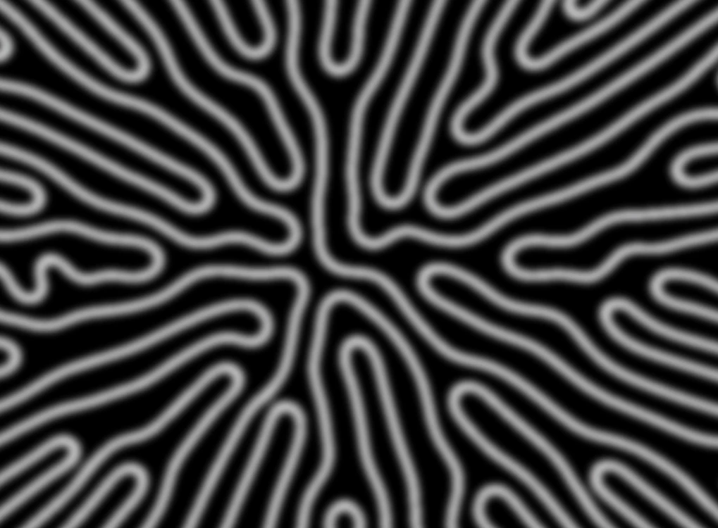 I figured out the reaction diffuse node exists. I was trying to make something similar with this but you need some sort of a base pattern to make it point towards the center like this and connect without overlaps.