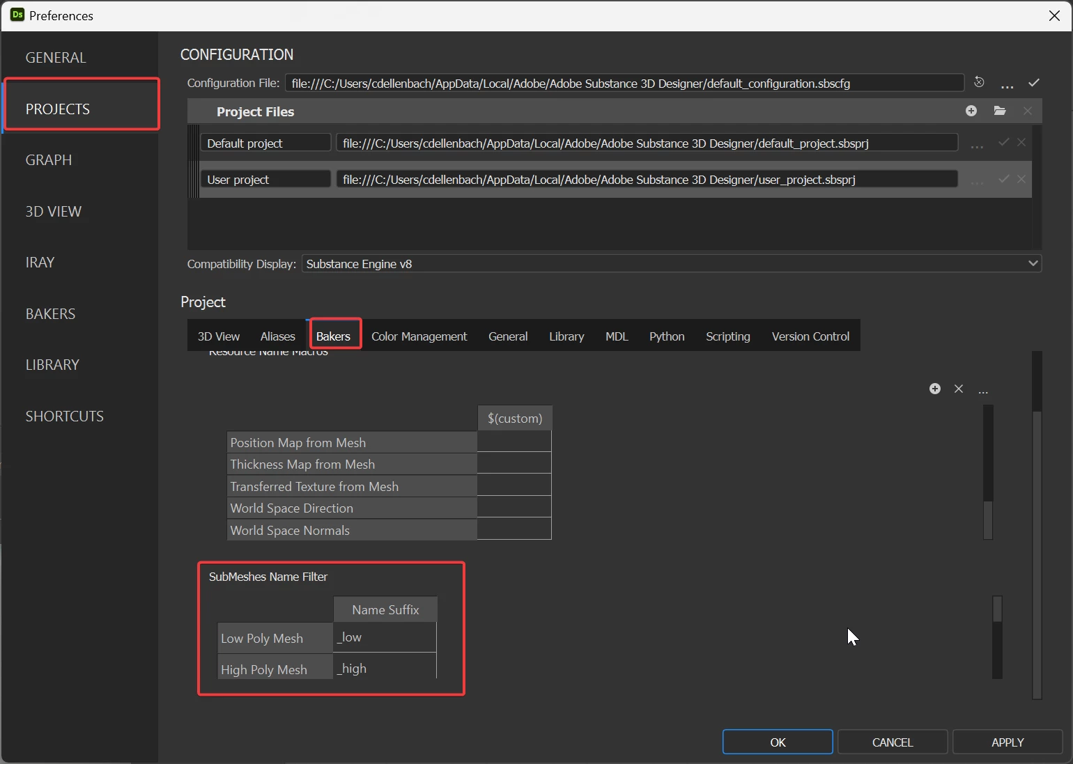 How to use custom suffix to for "match by mesh name" feature in designers baker