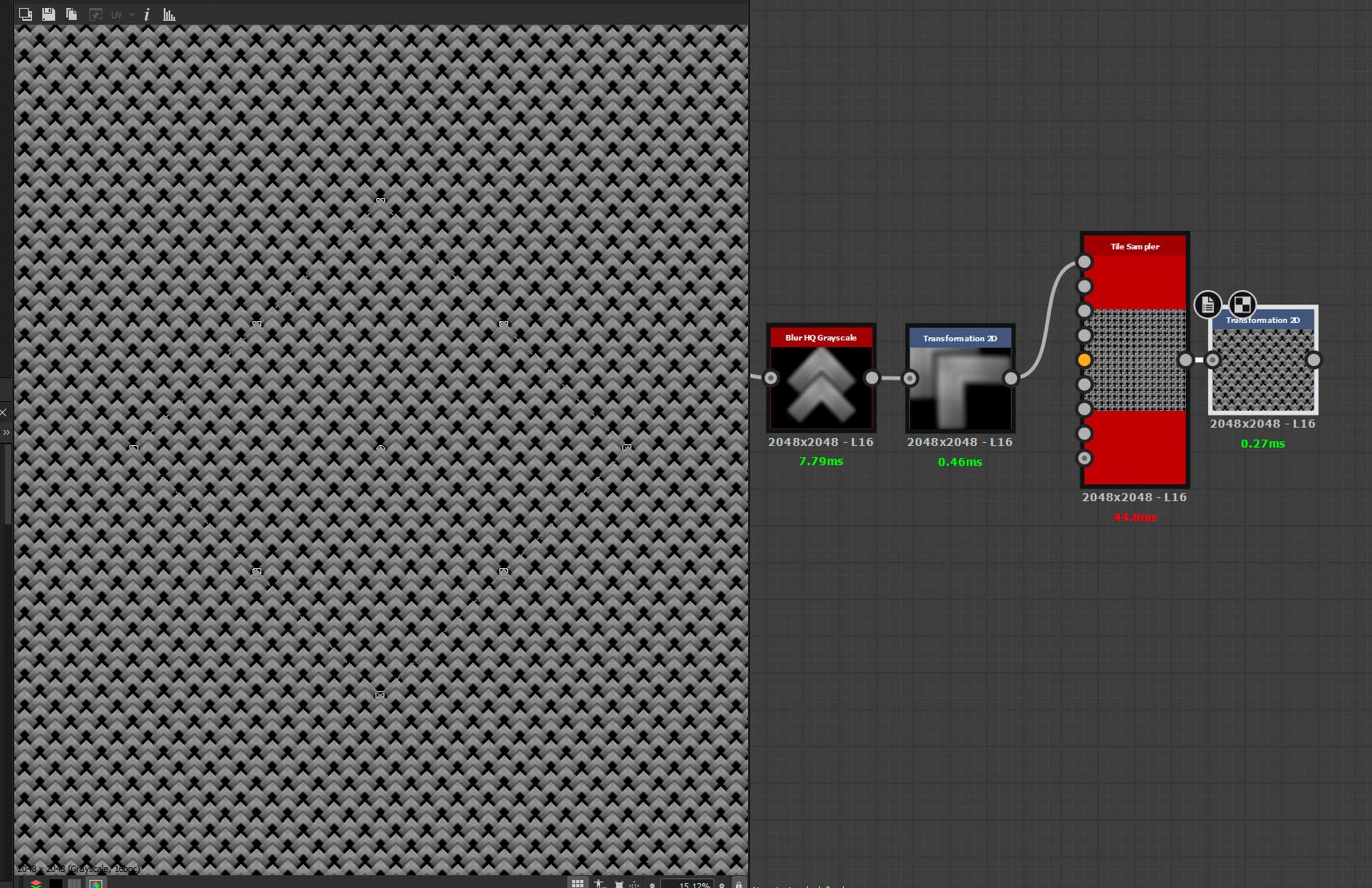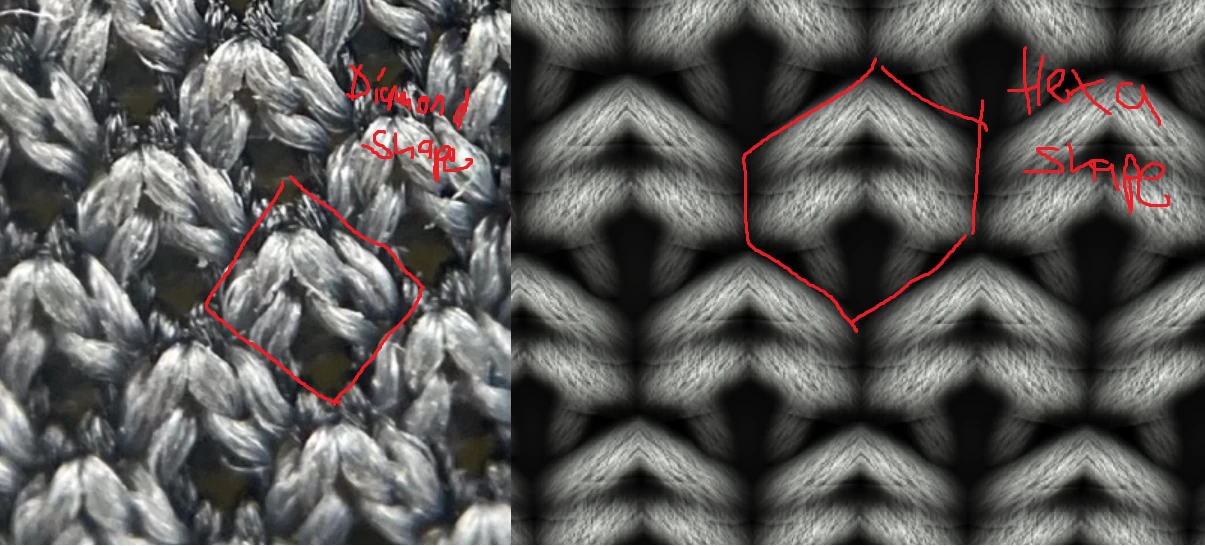 I am trying in Substance Designer to recreate a diamond shaped textile. But I want it to tile like a diamond pattern does, meaning it will have diagonal rows. But I can only achieve a hexagonal shaped pattern, which doesn´t create this diagonal diamond shaped pattern.