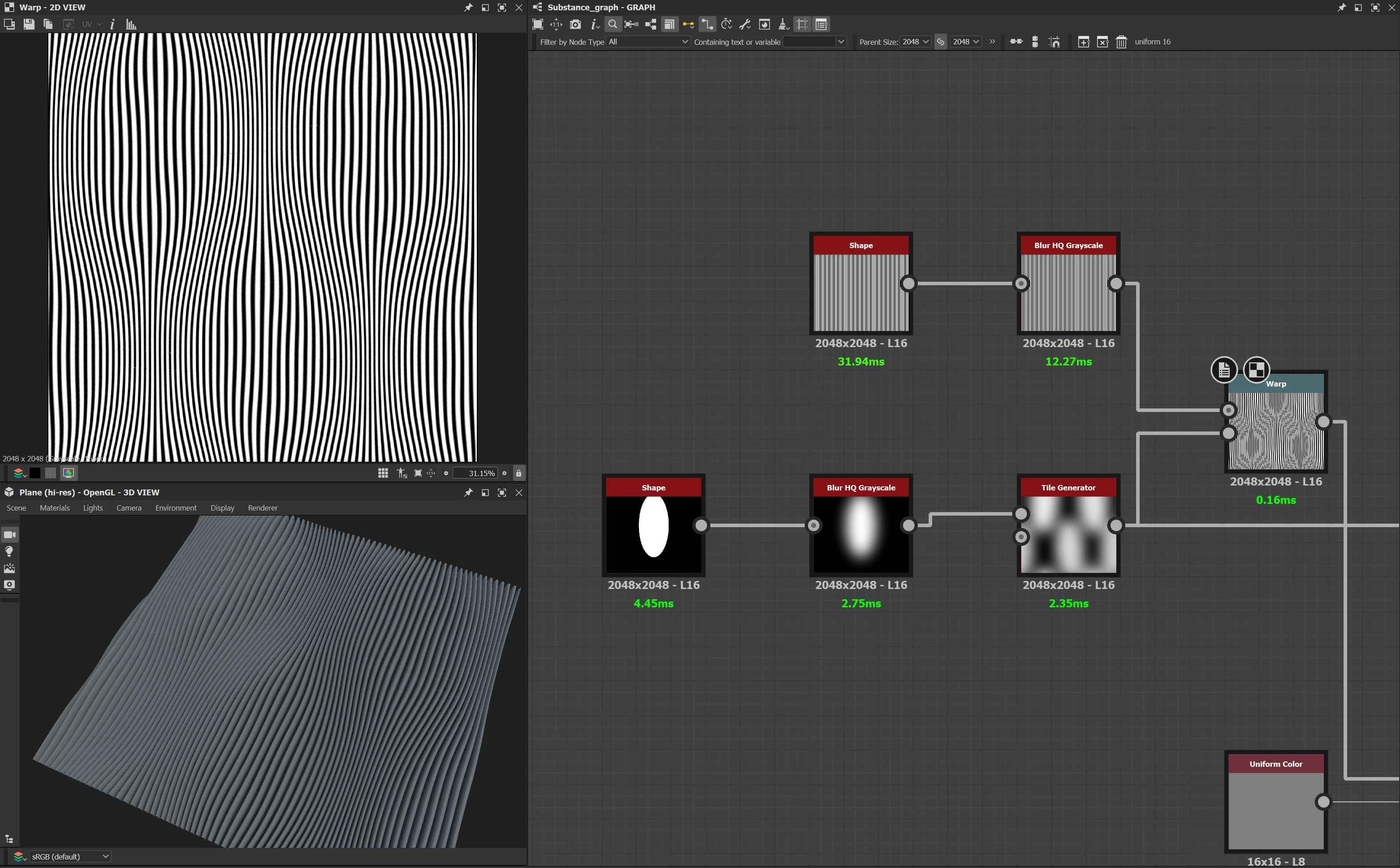 物質デザイナーできらめく線で構成されたパターンを作りたいのですが、どのノードを使えばいいのかわかりません。少し大きめで、風の模様のような模様感がありながら、線で構成された模様を思い描いています。