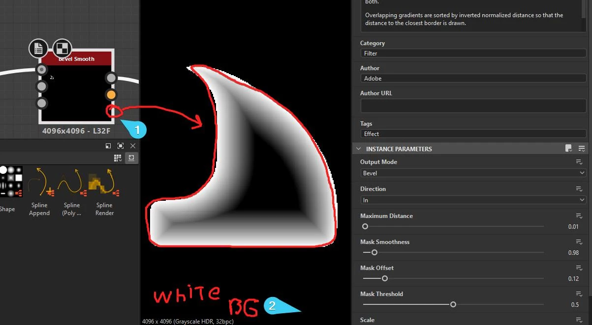 A range of other nodes, such as Bevel Smooth, Directional Distance, Normal Uncombine, a Histogram Equalizer, with its companion nodes Histogram Render and Histogram Compute, and a new version of the Curvature Smooth node.