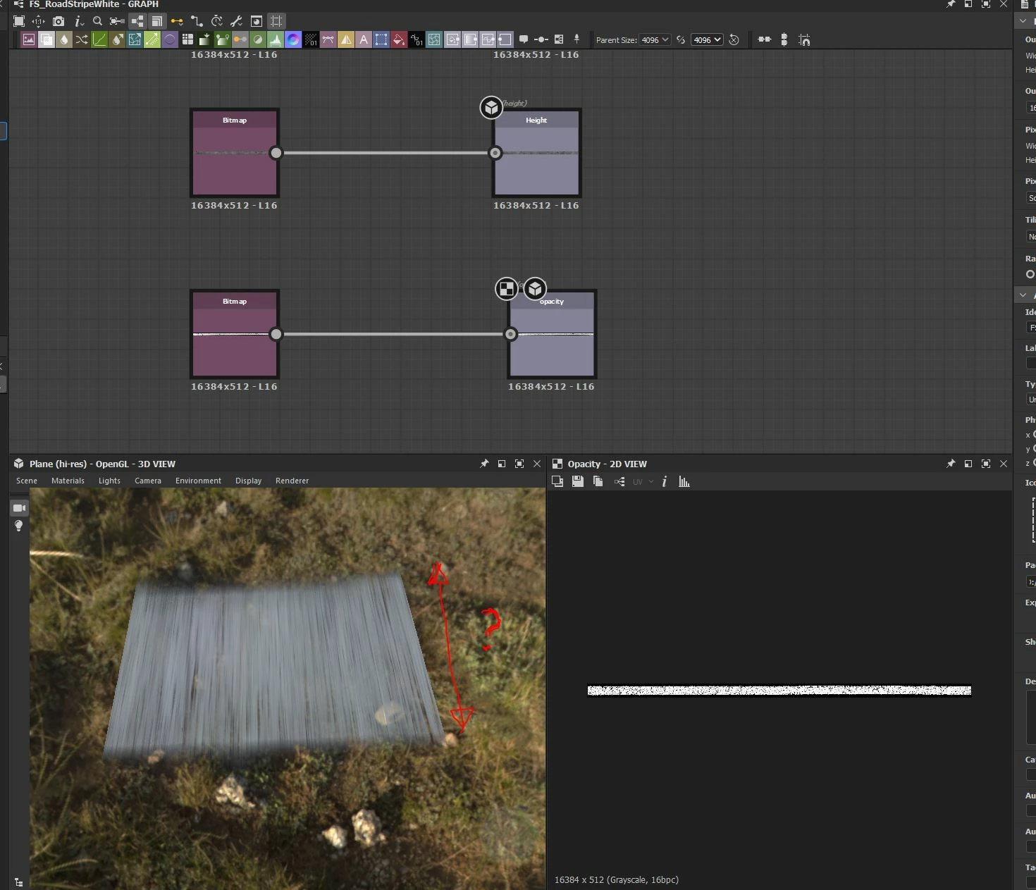 I have some texture maps for a line marking for a road, the dimensions are 16k by 512 since its just a long white line.