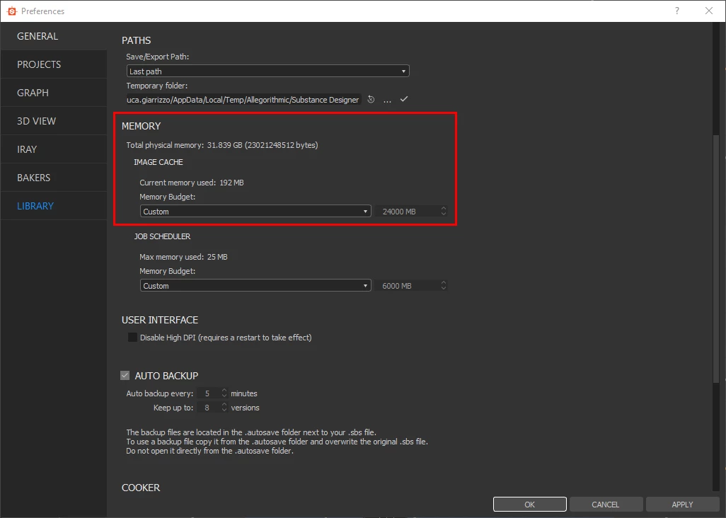 Substance Designer freezes my whole pc while show zero cpu or gpu graphs . With evry complex material I see that red text: memory 99% or memory 128%. What kind of memory does it need to work properly? System memory or vram ? Or maybe SSD to store something cashed ? Should I uncheck node image cache or something? I have 32gb system memory and 6gb vram . What should I upgrade?