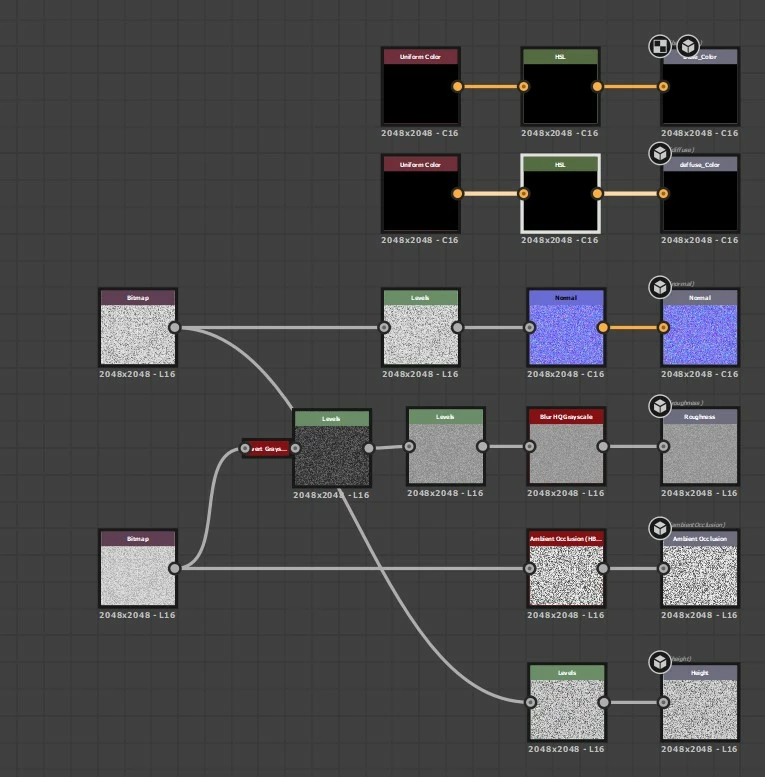 Hallo an alle Ich arbeite erst seit kurzem mit Substance Designer und versuche, ein schwarzes Leder zu kreieren. Mein Problem ist, dass es nicht wirklich schwarz wird. Egal ob mit Grundfarbe oder mit Diffuse Farbe. Wo ist mein Fehler? Vielen Dank für Ihre Hilfe!