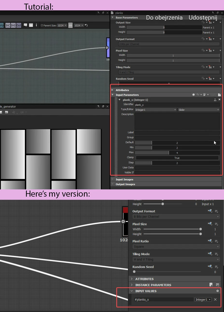 In about 8:25 minute of the Aged Wood Planks 02 there are input parameters to be added, which in my Designer version (10.2.2) are missing: