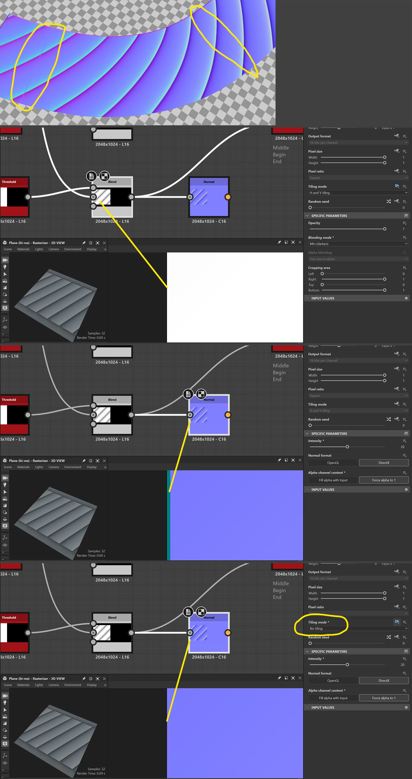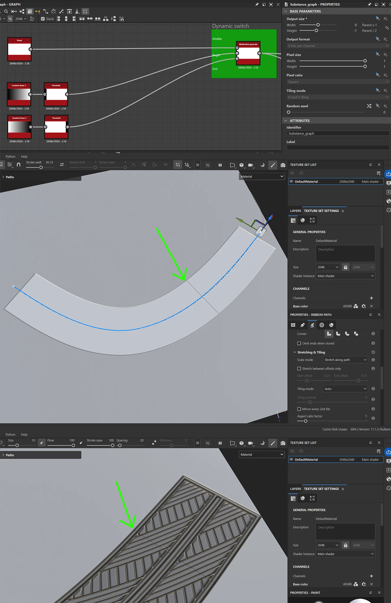 I’m creating some dynamic ribbon materials, but I’m running into an issue where a visible seam appears where the end piece meets the middle section when the material is used in Painter.