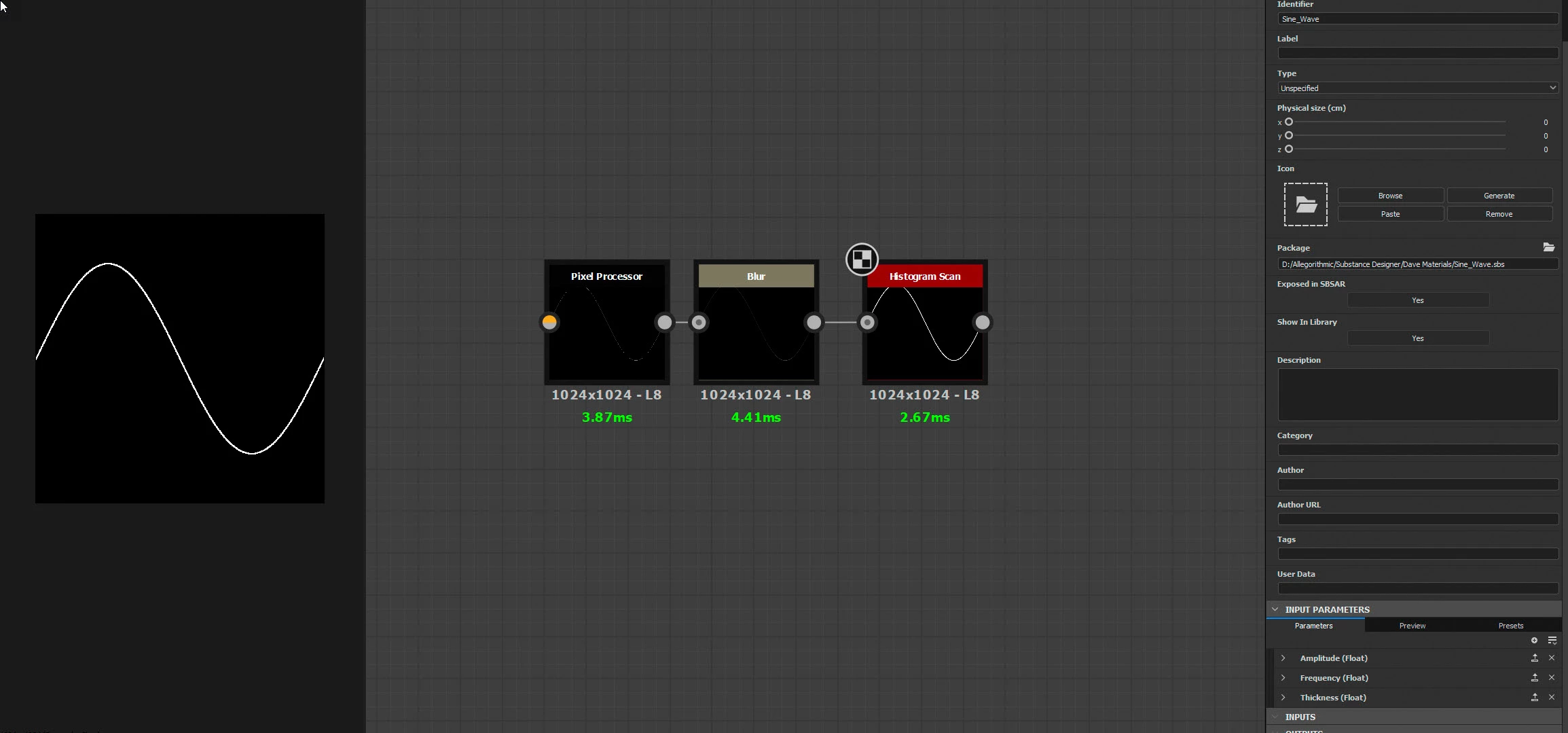 However... it also provides you with some controls; there are 2 sections: the generation control allows you to switch between the static & dynamic texture; the other controls can be used to customize said dynamic texture: frequency, amplitude and the 'thickness' of the shape.