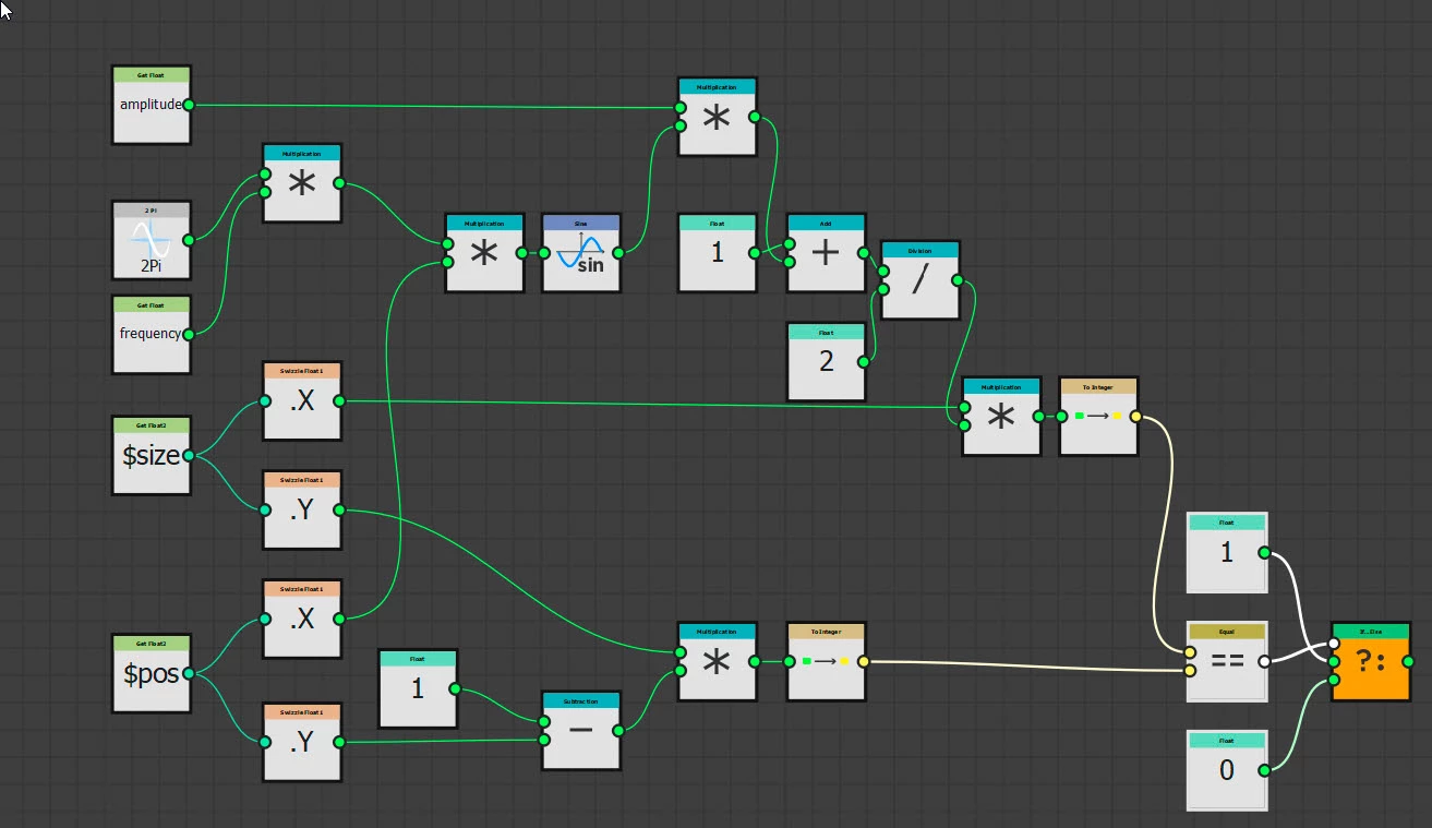 Over the past few weeks I've been very pre-occupied with 'Designer', even managed to help out my gf by providing a home made texture generator for some of her clothing assets. She actually started the idea for this small project of mine: getting a sine wave and use that to generate some flower-type shapes. So one thing led to another...