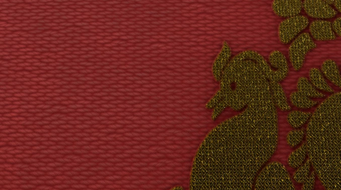 I am trying to achieve the fabric pattern from a piece of south Indian silk fabric. I am having trouble achieving the effect as shown in the images attached but I am having trouble doing this. I used a bitmap of the peacock to make this fabric. In my efforts, the peacock looks like it has been printed with a gold film rather than stitched with gold silk fibers. I had followed a tutorial on youtube about creating an old fabric. Any help would be appreciated.