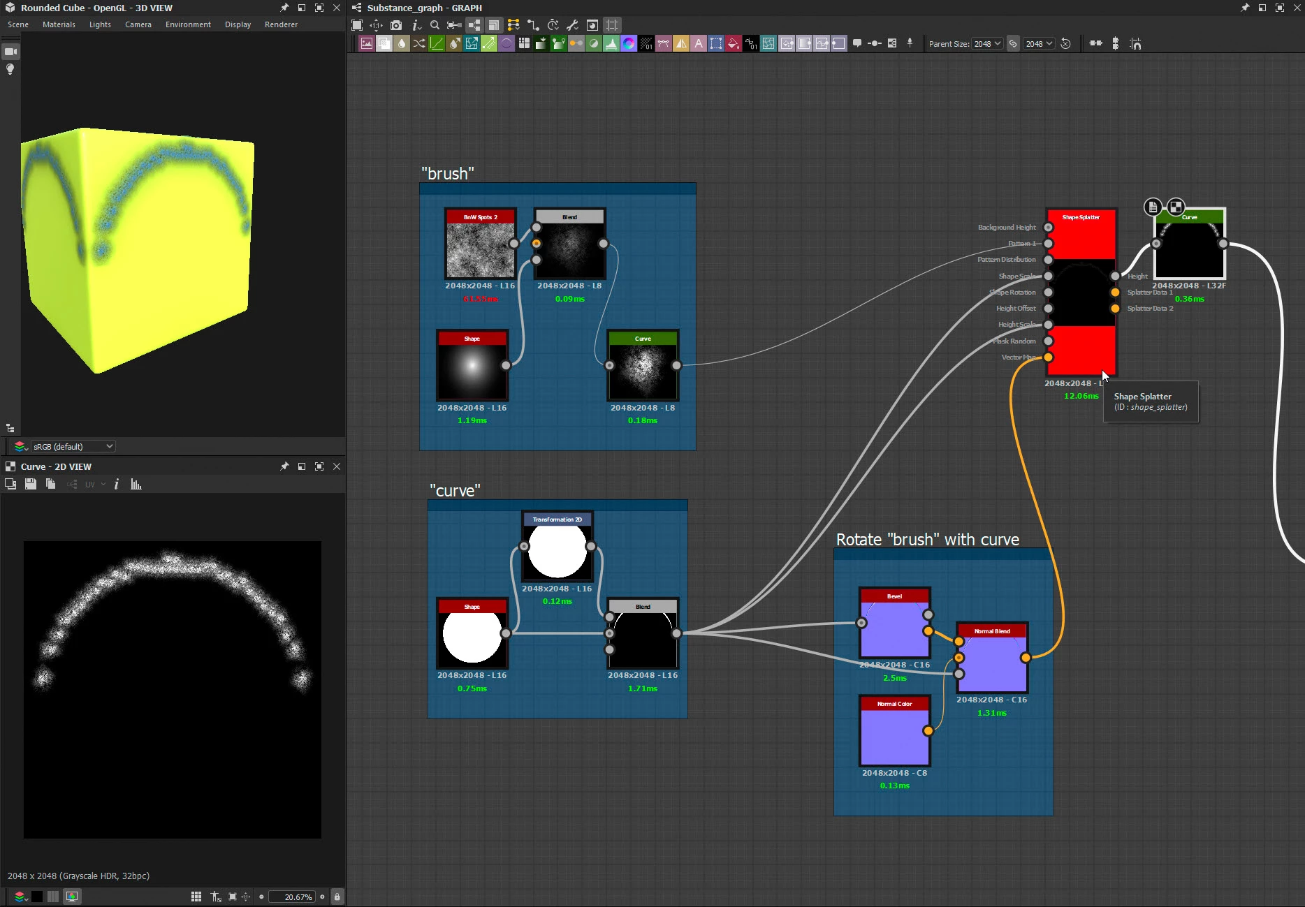 Of course I can just paint this in Photoshop, but I'd like to make it procedurally, so I think Substance Designer may be the right choice. I know there is Shape Splatter, but it splats the shapes all over the places. How could I make the brush stroke like above?