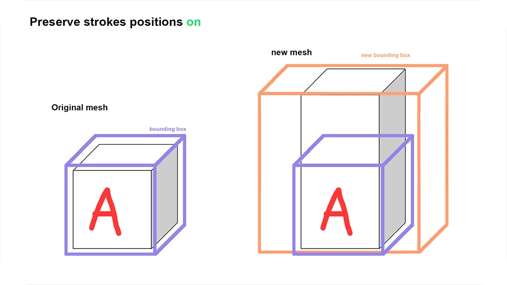 When you reimport a 3D model, Painter takes the first stroke made in the project, and based on its camera position reapplies the strokes on the bounding box. It then repeats this process for the second stroke, the third, and so on.