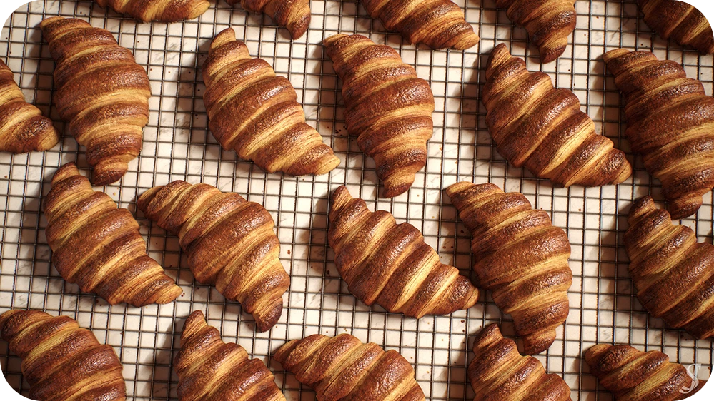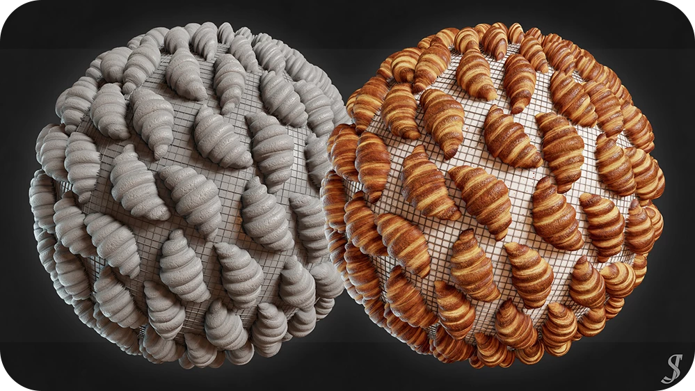 Can you talk about one of your favorite projects? I’m going to choose ‘Croissants,’ which involved creating realistic food on a metal cooling rack and marble countertop, resulting in a detailed and interesting material. Using Substance 3D Designer, I focused on each element individually, then combined them for the final result. I thoroughly enjoyed working on the layers and folds that form the croissant's shape, as well as the bubbling and discoloration from baking.