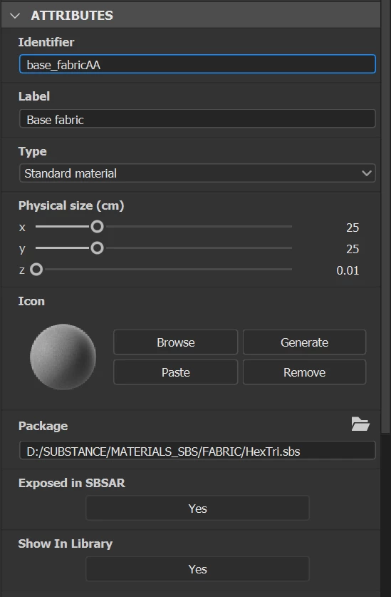 The exposed parameters I made on my "HexTri '' are working fine in the sbsar but the exposed parameters on the base fabric aren't visible even though I have the "base fabric" package exposed in sbsar.