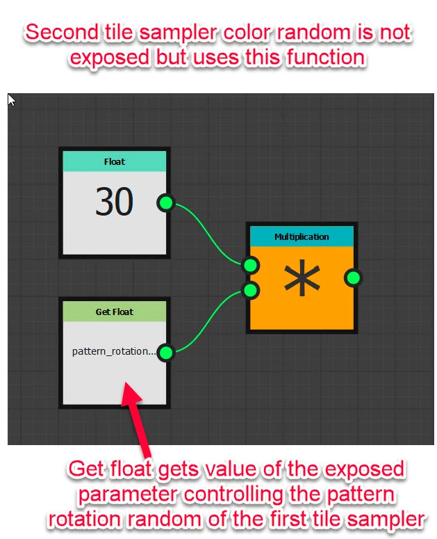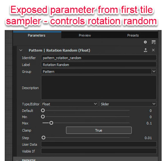 I would like to set it up so when I change the rotation random in the exposed parameters, the colour random changes for the second Tile Sampler.