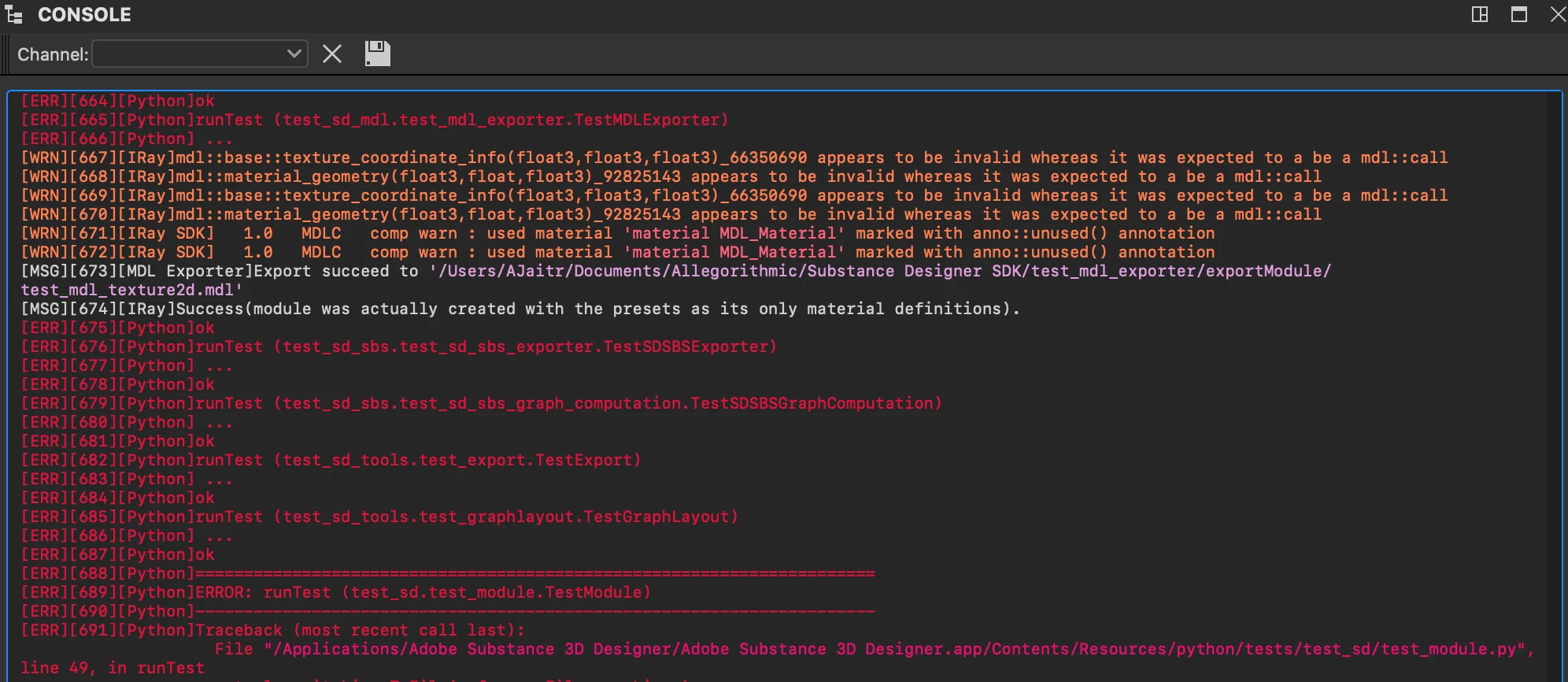 We are trying to implement our own unittest within designer and are using the sample test runner that comes with Designer as a template. However, when running unittests, the results are logged as errors and are red even when the test technically passes. Is there a way to have the unittest output instead be logged as info when passing? Attached is the code ran and the console output.