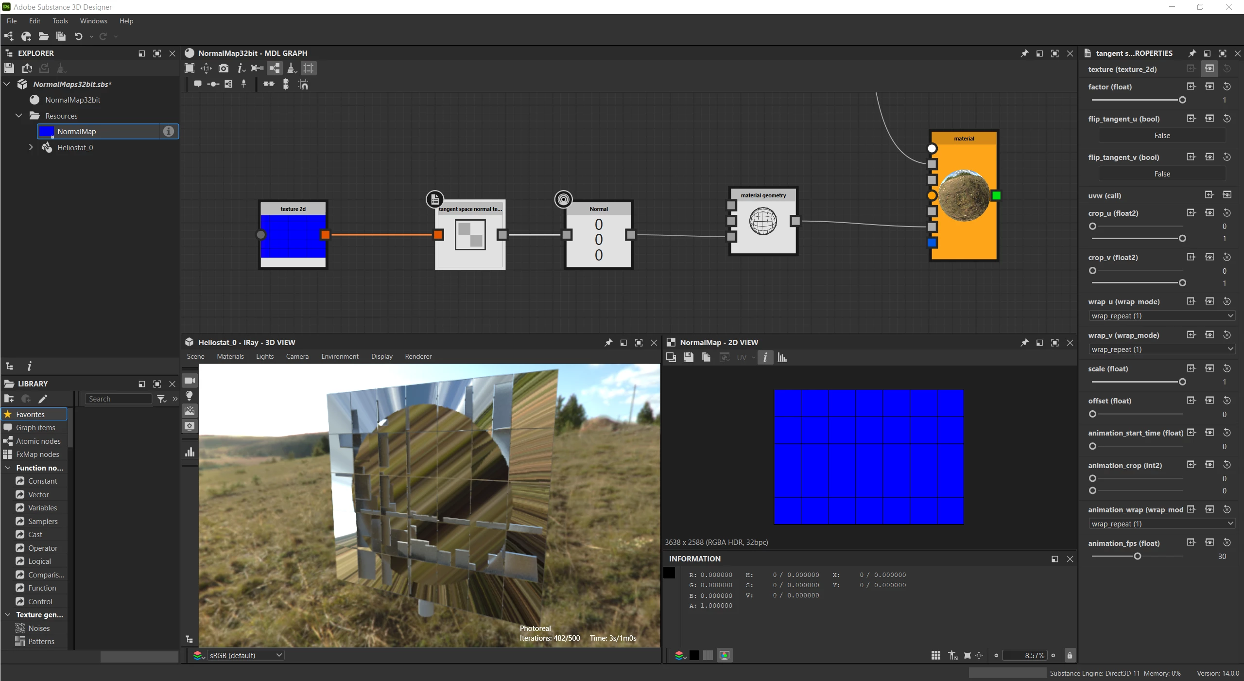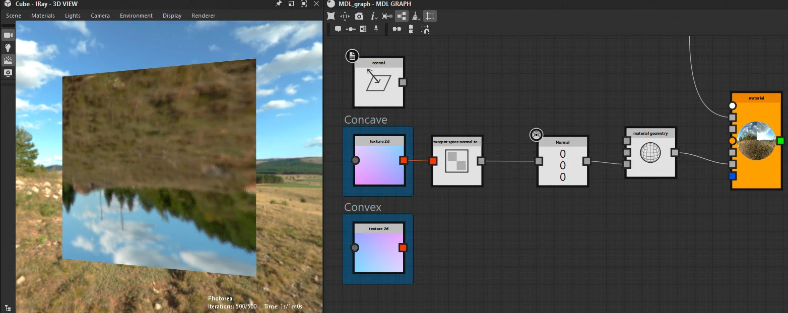 I am trying to use a 32-bit normal map (in the range [-1, 1]) to give a slight parabolic curvature to a mirror. I use tangent_space_normal_texture node to read the rgb channels as xyz normal components. The result is shown below: I should see the sceen slightly magnified.