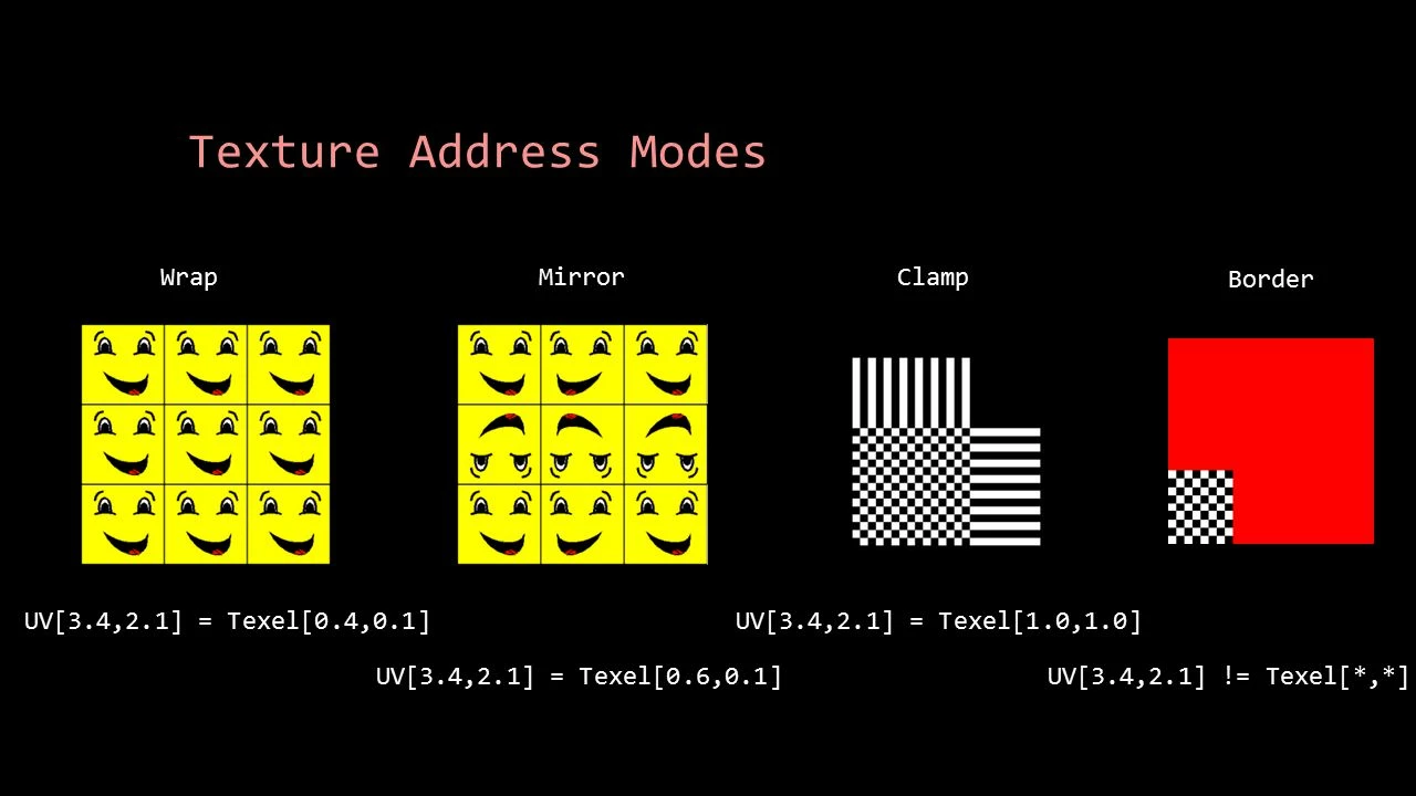 To perform mirror, clamp, border sampling mode, the user should build node graph.
