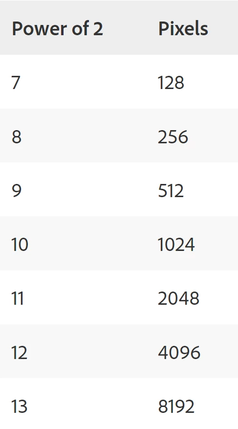Due to how graphics processing hardware performs its computations, all the assets in the graph have power of two dimensions.