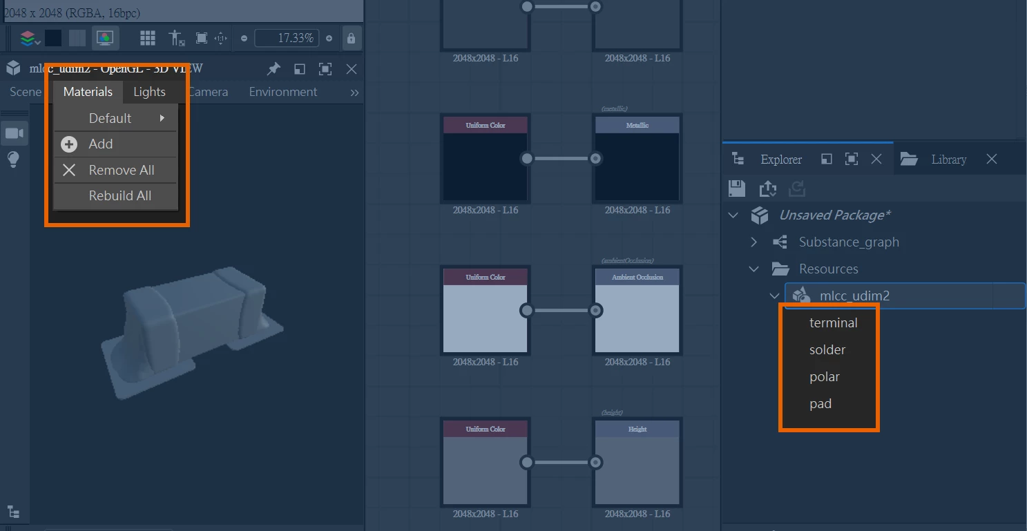 Hi, I'm new to Substance Designer. In my 3D model, there are four objects, each with a designated material. After exporting as FBX and importing into Substance Designer, the materials of the model itself do not appear in the material section of the 3D view. I would like to ask if anyone knows where the issue might be. Thank you!