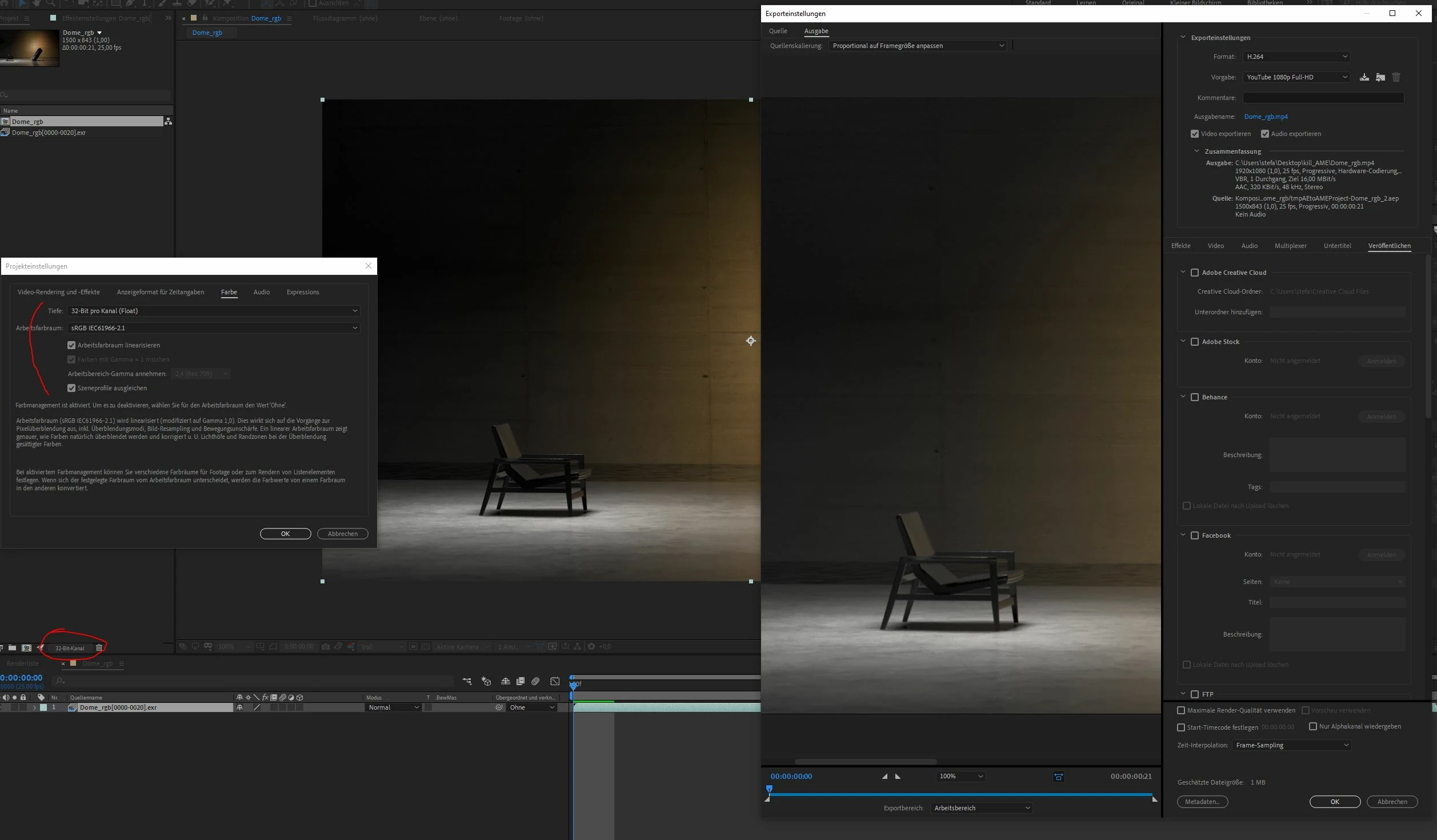 SStefan24785554dgu5ParticipantForum|Forum|3 years agoJune 8, 2022Question32 bit export to Media Encoder wrong Gamma resultForum|Forum|3 years agoJune 8, 20220 replies214 viewsHello!the screen in attach shows the setup:-32 bit per channel-linear workflow.. I cant find soloutions for right colors in Media Encoder..Direct AE export works fine -but there is no H.264..(system: windows10 / AE 2020 / file: 32bit corona render export from cinema4d) Export or render