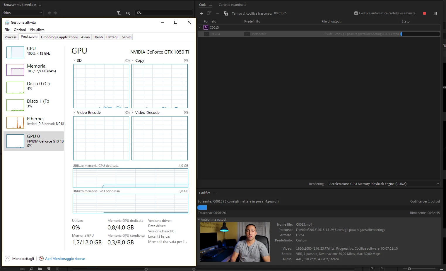 Switching to VBR, 1 pass is a little bit better but still more than 35 minute to export the video and 0 GPU usage: