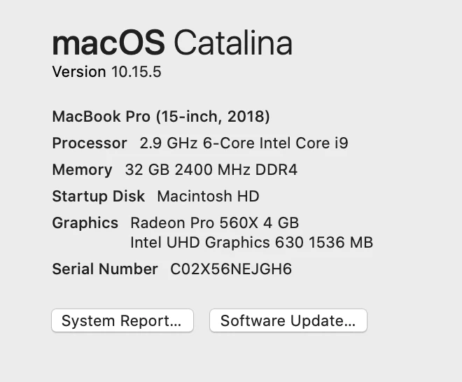 Graphics: Radeon Pro 560 4 GB
