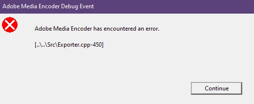 Adobe Media Encoder has encountered an error [..\..\Src\Exporter.cpp-450]