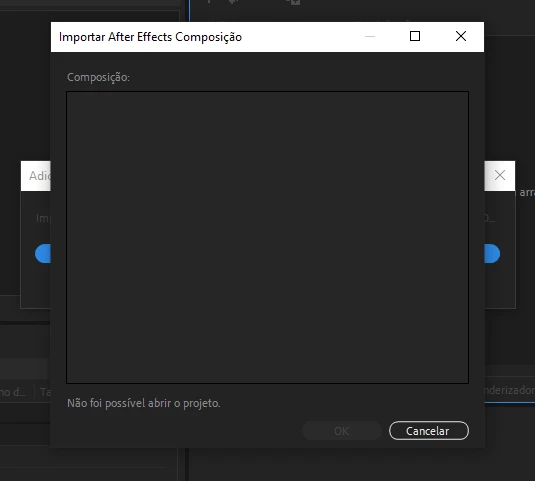 Hoje tentei renderizar um arquivo feito no After Effects 2022 no Media Encoder 2022, porém sempre apresenta a mesma falha: Não foi possível abrir o projeto. Tentei abrir outro arquivo e não deu certo. Desinstalei e reinstalei o Encoder 2022 e não deu certo. Por favor, preciso de ajuda!