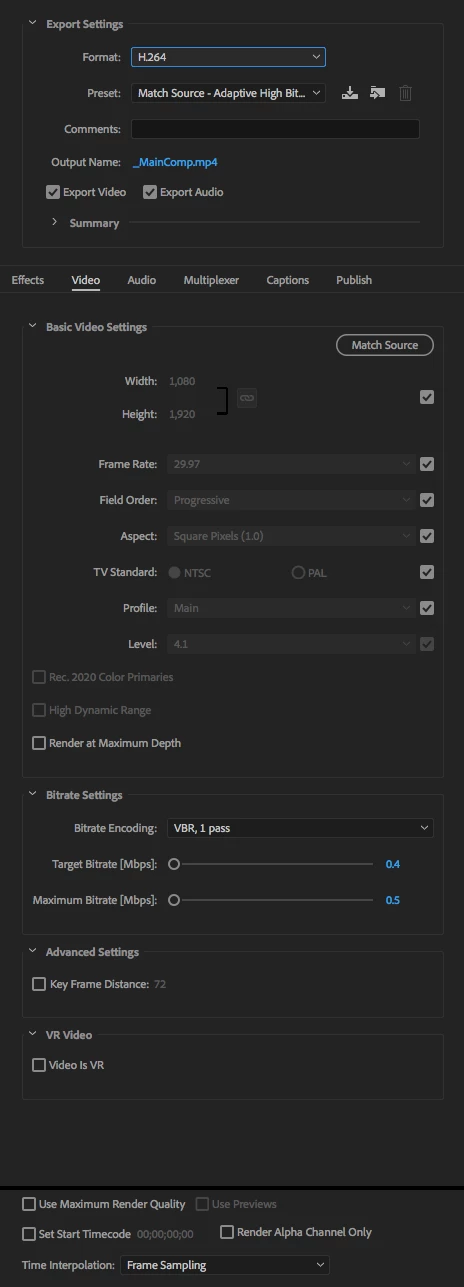 Adobe Media Encoder unexpectedly rendering very low quality .mp4 files