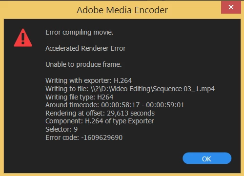 Adobe Premiere Pro: Error Message Compiling movie -1609629690