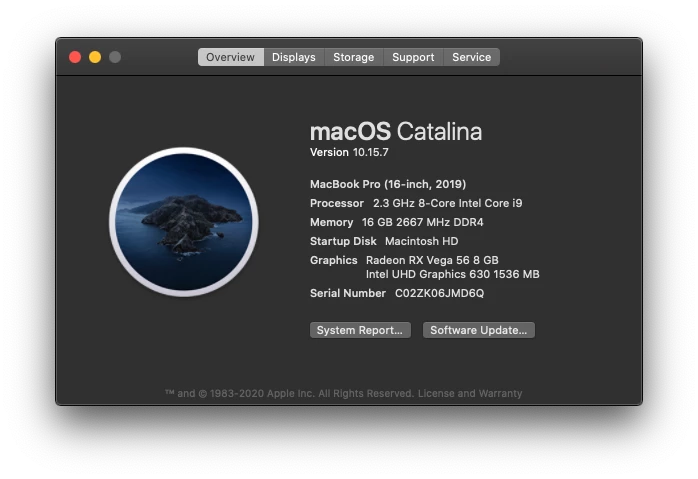 Here are my specs. (Radeon RX Vega 58 is in an external GPU connecting to my macbook)