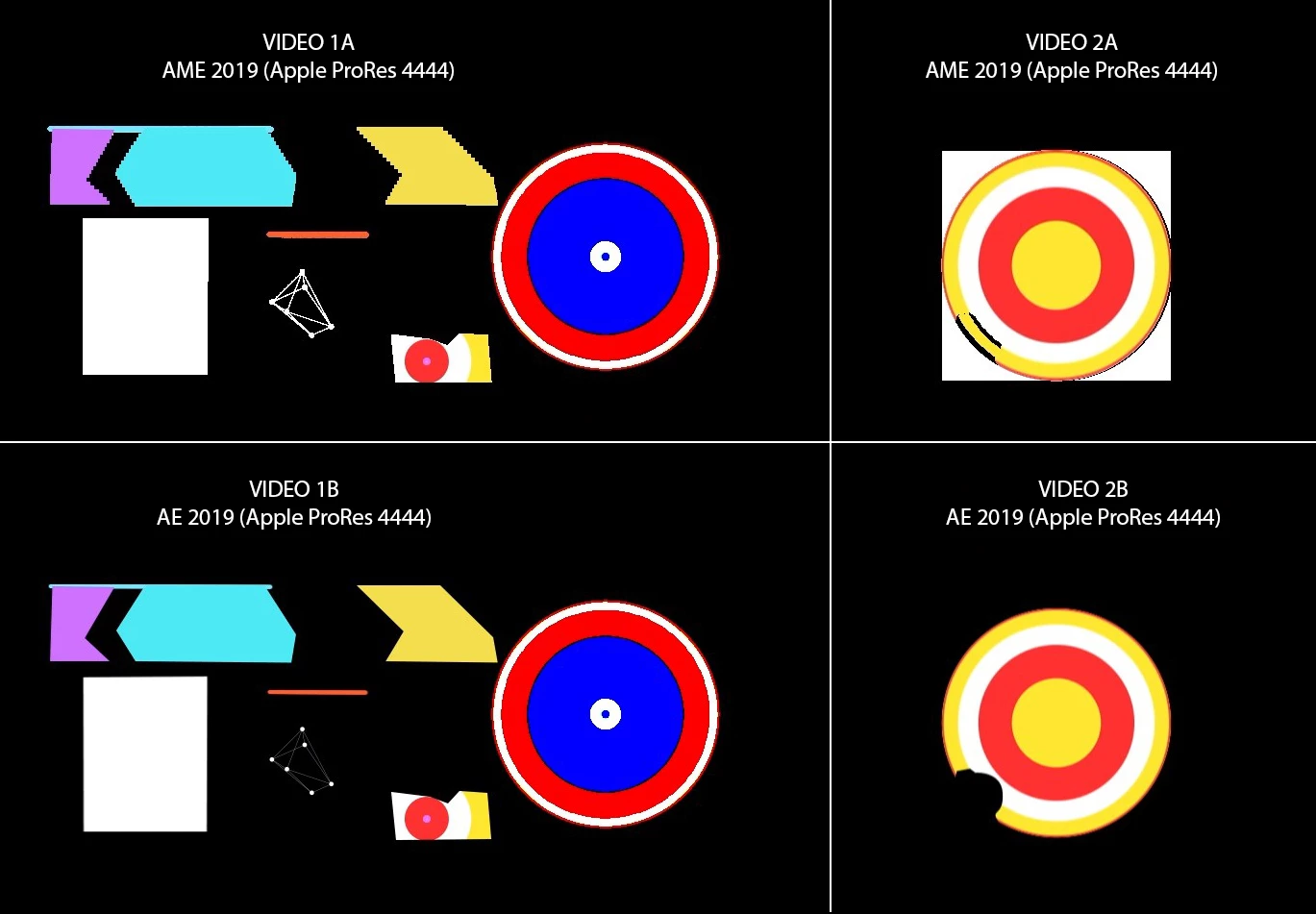 Here's a comparison of videos exported from AME and AE.