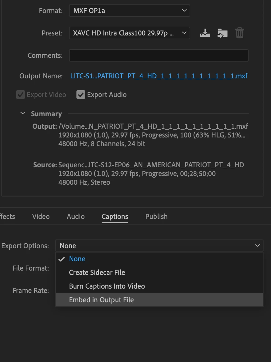 In the last version I WAS able to get EMBED CLOSED CAPTIONS to work with 608. I am not sure if it is the new CAPTIONS "tool" in PP or the new update in AME. I have tried EVERY MXF codec and they all show EMBED CAPTIONS options. Then the final output file does NOT have them at all. So basically Adobe has decided to take a big step backwards with Captions.
