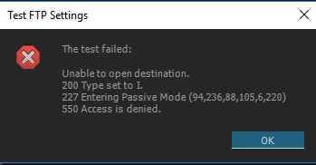 Hi, When setting up an FTP publish in a watchfolder I hit "Test" and then AME creates the following error: