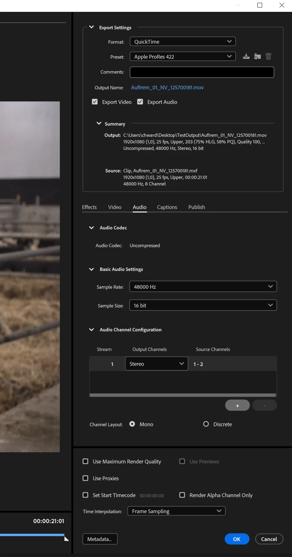 AME - Mixdown from 8 discrete channel .mpg file to stereo ProRes? Is it possible