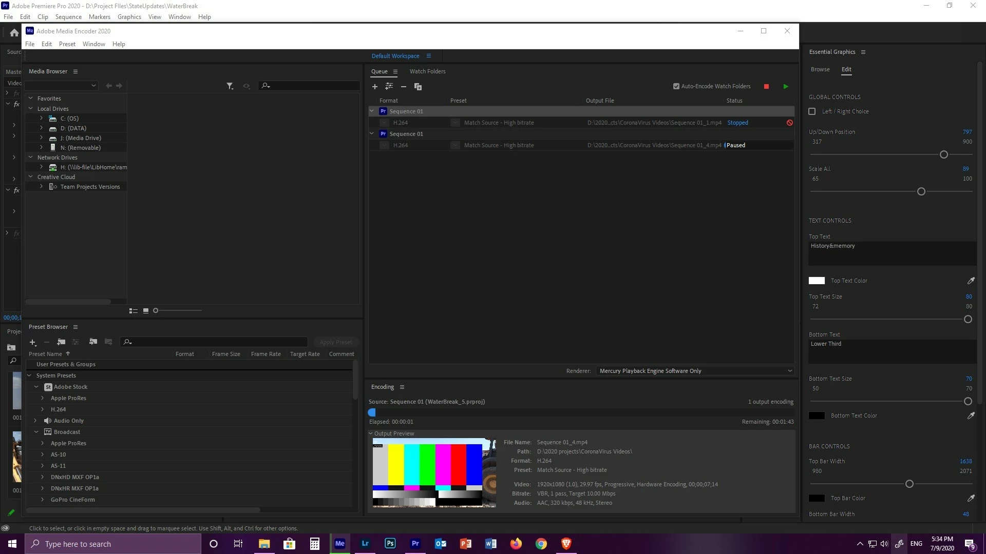 I just noticed it today that when I was exporting a clip from premire pro to media encoder when using an esstenial graphic preset it gives me this static bar. But when I had exported it in Premire Pro it renders out perfectly fine. I was wondering if anyone had the same issue as me?
