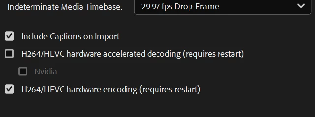When I export MP4 from AME, it will not play in Media Player, but will play in MPC-HC. I looked up a "fix" for this, and it says to use hardware accellerated encoding. Well, the preset settings show Progressive checked but grayed out, and if I try to change the Encoding Settings from Software to Hardware encoding, I get an error message "Your system's hardware does not support hardware accellerated encoding for the current settings." I'm following the same workflow that has always worked before, which is rendering to Quicktime Animation compression and compressing to MP4 in AME. I'm on the latest version of AME on a new computer with i9-14900K and RTX 4080 Super GPU. I just updated the driver to see if that would fix it, but it didn't. I tried disabling the checkbox shown disabled in the Preferences Media tab to see if that would turn off Hardward Encoding and fix the problem, but it had no effect. It's not that I particularly need it play in Media Encoder, but that does tell me something is wrong with it. Any suggestions welcome! Thanks!