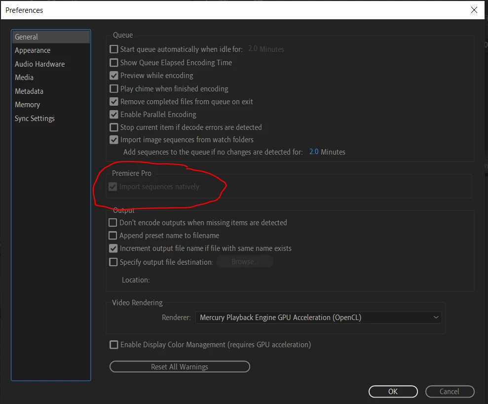 I read similar threads with AME and mogrts discussing a "Import Sequences Natively" option in AME, but this is greyed out for me (Image 3).