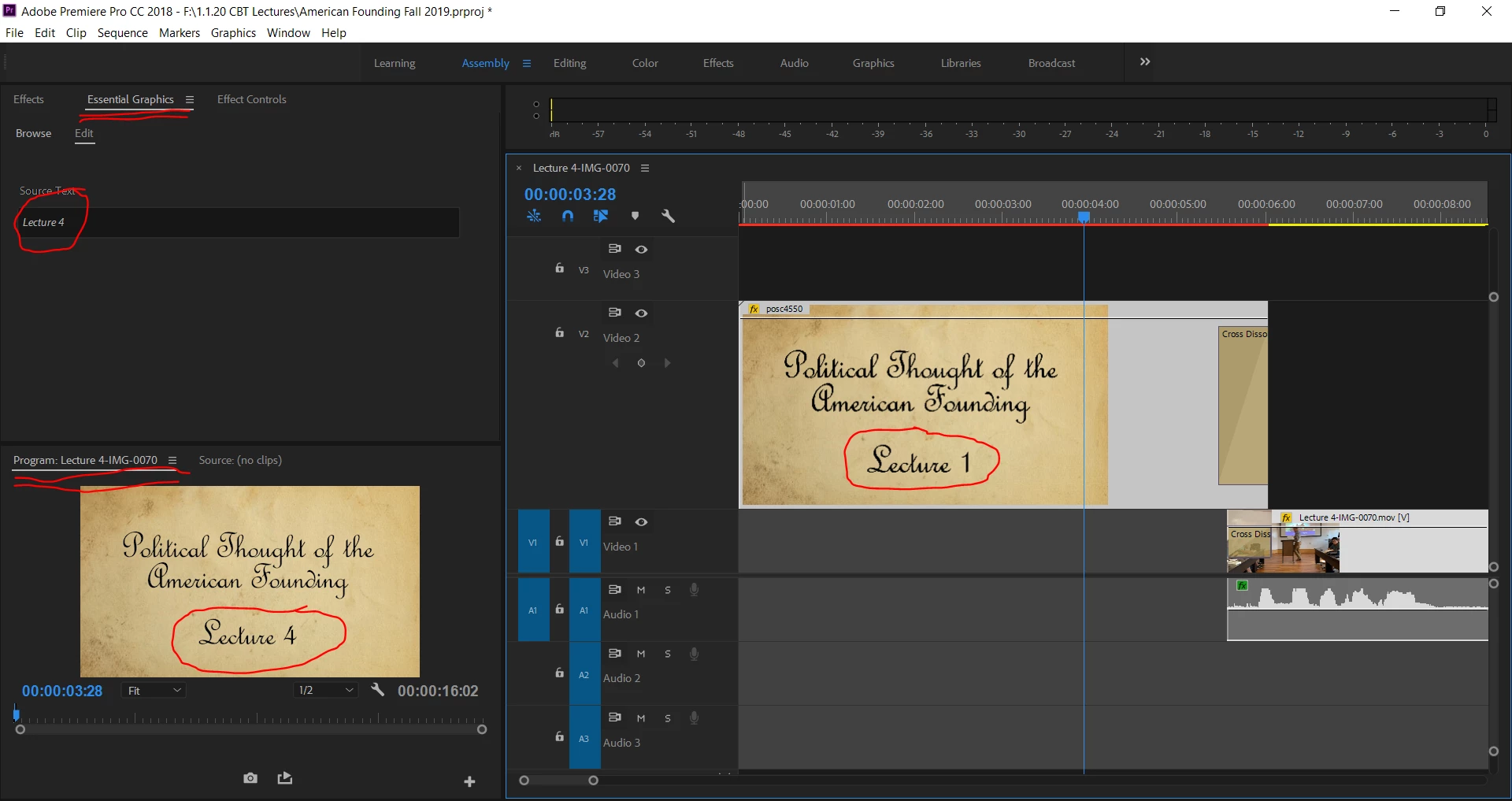 Also, this might be related, but the thumbnail image of the .morgt as it appears in the PrPro timeline reflects the orginial .mogrt export which read as "Lecture 1" (Image 4). But the program and essential graphics panel displays them correctly...? So its almost like a glitch that is ignored in PrPro resulting in a correct export, but the glitch is taken literally in AME resulting in an incorrect export.