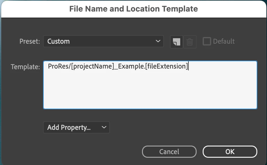 For example, if I use my custom Prores422 preset, that would automatically add something like "_Example" in the end of the file name.