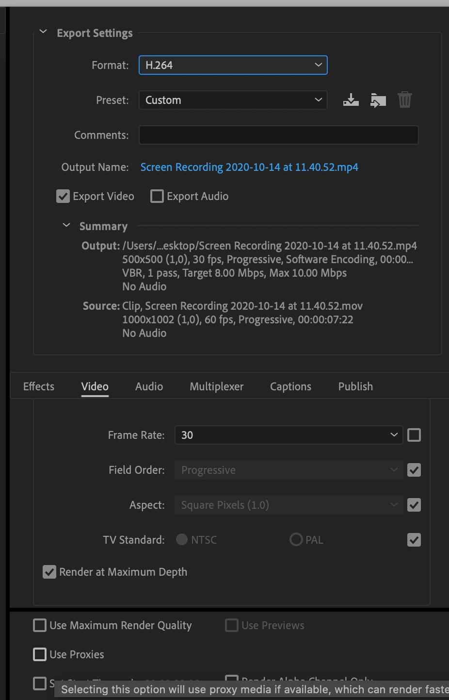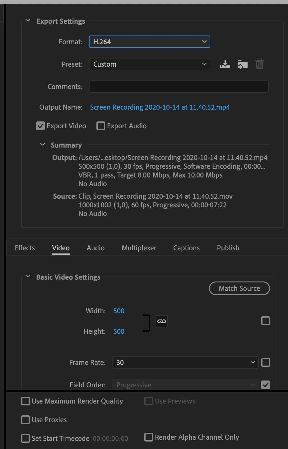 I need to make a video which is 250x250px for a website. I've used quicktime to capture the video and made the capture area 500x500px so that I could capture the details of the screen I need to and so that I get a 2x file size for retina screens. The resulting video comes out at 1000x1000 due to it being recorded on a retina screen. so I need to scale it back down to 500x500px.