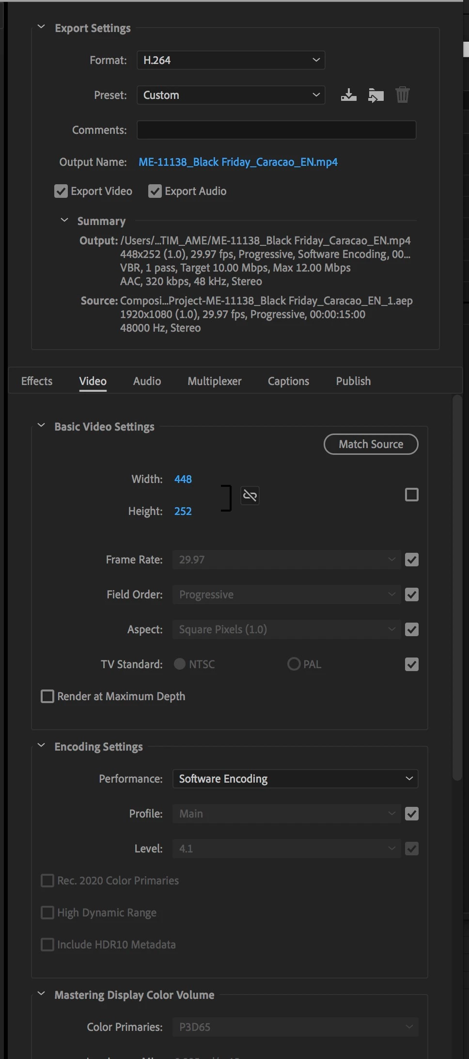 Can't downsize a video from (1920 X 1080) to (448 X 252) in AME