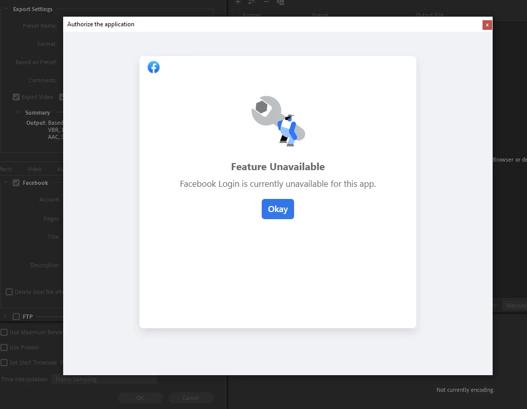 Recently I've noticed that I was signed out of Facebook on my main publishing machine and I logged back into Facebook. After successfully logging in with my FB credentials I would get the following error message.