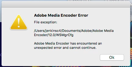 Media encoder won't open, it says "Adobe Media Encoder has encountered an unexpected error and cannot continue"