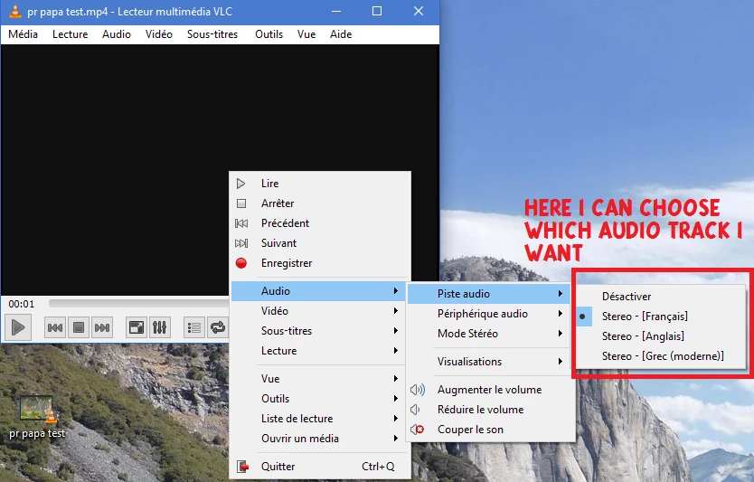 I've got an mp4 file with 3 different audio tracks (each audio track is a language. So in VLC, I can make a right click and choose which audio track I want to play).