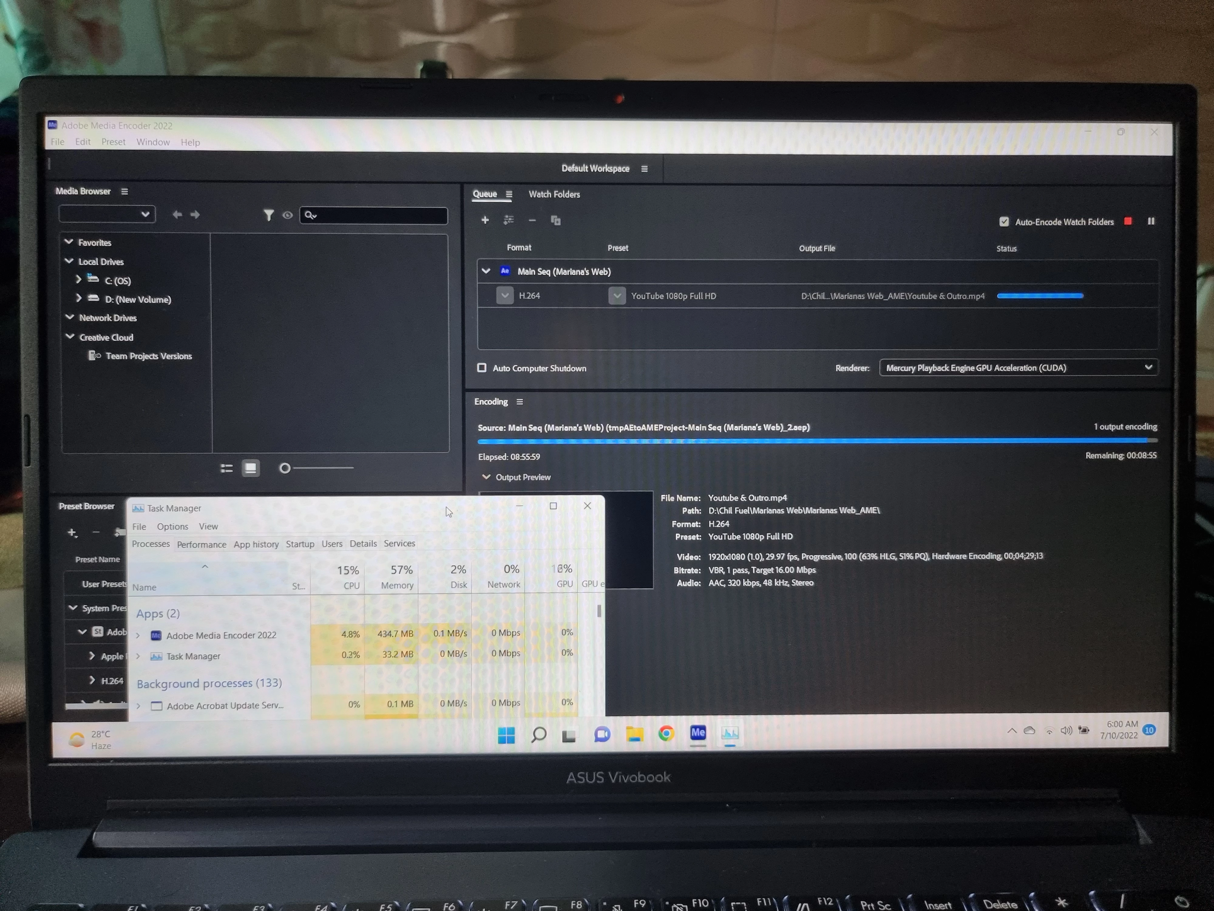 A 4 mintues video is taking more than 9 hours to render. Initially the Encoder was using 90% to 100% of the cpu and rendering was going fast. But suddenly after 5 to 10 minutes, the CPU usage dropped to 10% to 18% and rendering became a nightmare. Any idea why this happened suddenly?