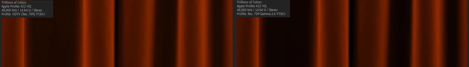 And the new renders are reported as: ProRes 442 HQ Rec.709 Gamma 2.4 Y CbCr.